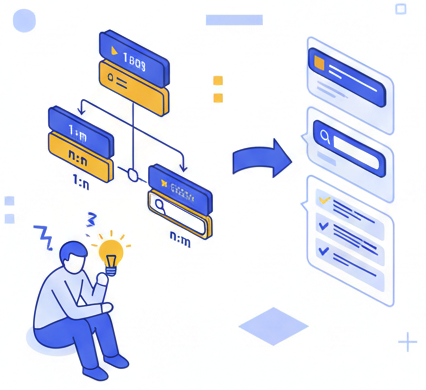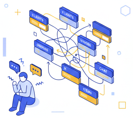 Mehrere Tabellen, viele Felder – aber die Beziehungen machen nicht, was du erwartest. Kunden, Aufträge, Positionen: Irgendwo passt die Verknüpfung nicht, Daten doppeln sich, Auswertungen sind unzuverlässig und alles wird langsam. Du willst Ordnung, damit die App mit dir wächst – nicht gegen dich arbeitet.